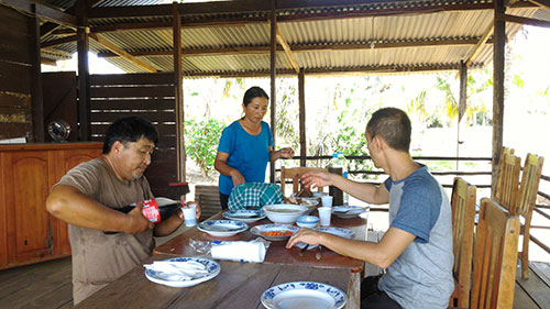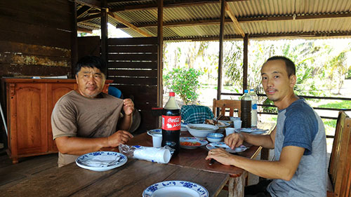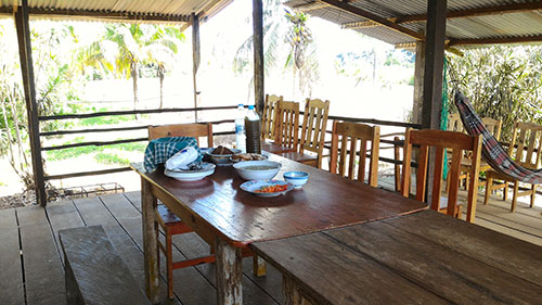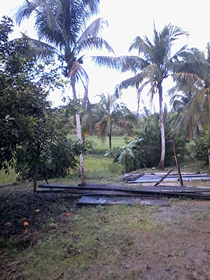 On a fait le ménage… J’ai nettoyé le petit carbet qui eut servi de restaurant du temps ou tata faisait de la restauration pour les gens de passage. C’est un endroit sympa et bien ventilé. C’est là que tonton et moi on vient boire à l’abri du soleil. Ça me rappelle aussi quand je suis venu la première fois, on avait bu ici avec ma femme Su..![]()